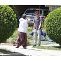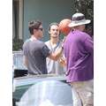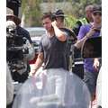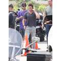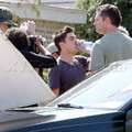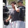 Zac Efron flexed his muscles and gave a pal a quickie back rub on the set of his new movie, We Are Your Friends.