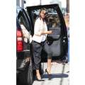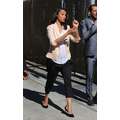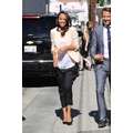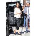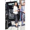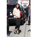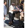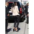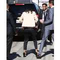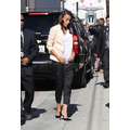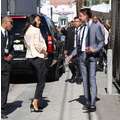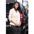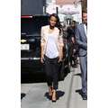 A preggers Zoe Saldana was all smiles while making a stop at Jimmy Kimmel Live on Monday.