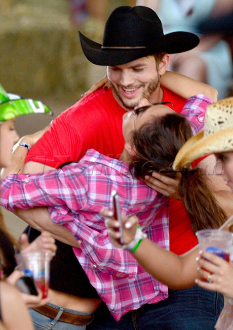 Mila sported a tiny baby bump in a tight black tank with an appropriate plaid shirt on top, which Ashton paid homage to his home state of Iowa with his Coca Cola-inspired tee and wide-brimmed cowboy hat.