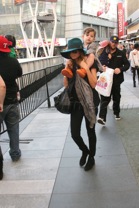 The 31-year-old fashion designer and her hubby looked adorable as they carried their kids around the bustling entertainment complex after the show. Looks like they found the perfect way to work off their Thanksgiving feast!
